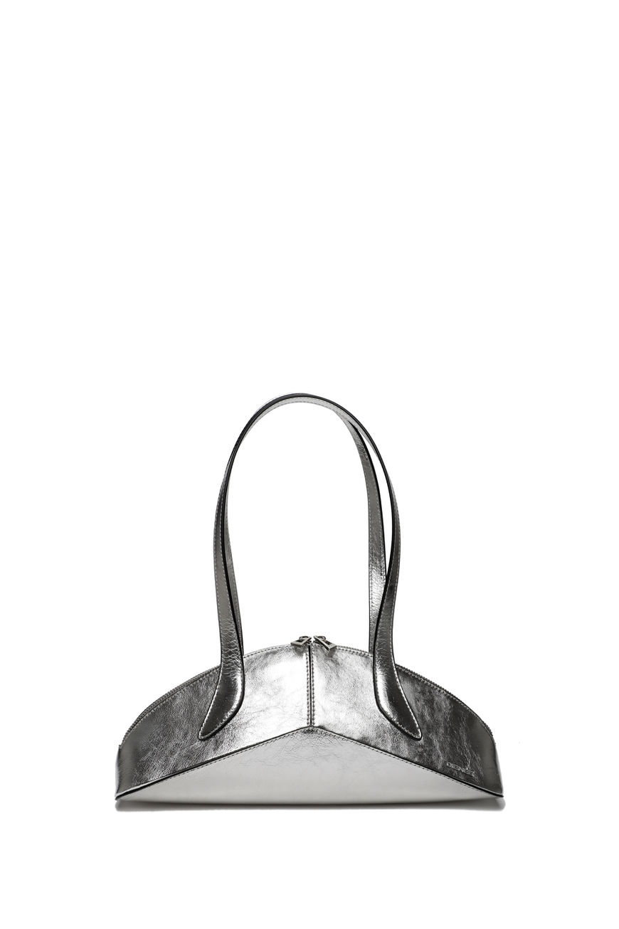 A play of geometries highlights unexpected elements of the bag, such as the base, which wraps around the body creating a subtle sense of movement.